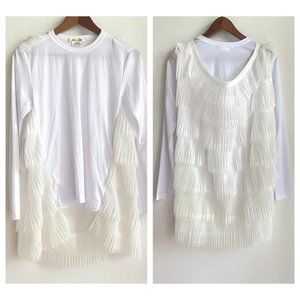 Comme des Garcons Ruffle Tiered Back Detail Long Sleeve White Top S