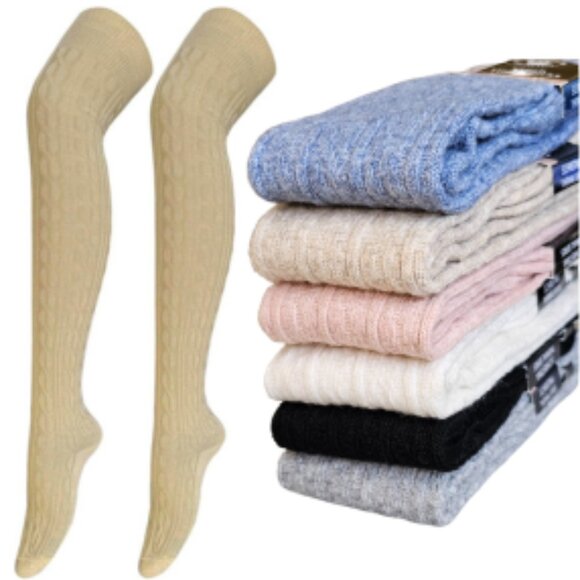 Unless you're a child with very big feet these are knee highs. But it's still a good price for cotton socks. Do not expect them to go thigh high unless you are literally a child. I'm very small thin five five but I buy thigh highs from other places and they're more cotton and they cost more. But good socks just should be called knee highs and they're very winter oriented so just know that they're thick which is good when it's cold. Cotton is important in socks so I'm happy to have that part when you add up how much they are prepared it's actually pretty good so thank you to the seller who has never responded to me ever