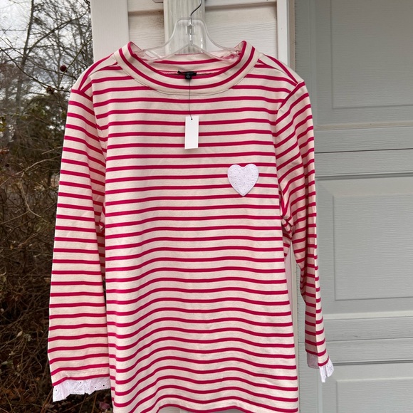 Lovely, quality sweater in a speckled pink hue. Pleased with this acquisition.