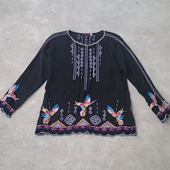 Absolutely beautiful Johnny Was shirt in perfect condition and exactly as described in listing. Thoughtfully packaged, quickly shipped and included a very sweet hand-written notecard. Thank you!!😊