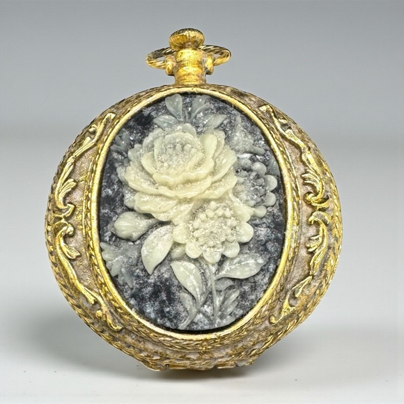 Exquisite vintage Max Factor pocket powder compact. The floral design on this gold-tone compact reminds me of Victorian Era jewelry. This compact is flat out amazing.