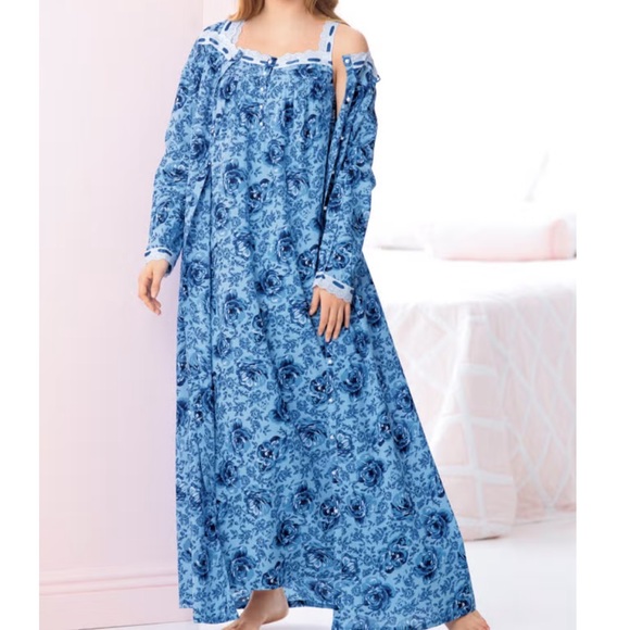 Set arrived even before I knew it did ☺️ It's absolutely a beautiful set. I thought from picture about it just looked cozy. I am at the age where these hot flashes come without warning. So having a loose garment is a must & now having a layer to take off is a plus !!! It is an absolutely beautiful set. I'll be searching Poshmark for more 💙 I would most certainly purchase from this Posh Hostess again & will be stalking her inventory always ! I don't remember the last time I bought for myself from a store. Why when Poshmark has it all at out fingertips. I do however wish there were more full length sleeping nightgowns to be found on this entire site. It's usually more of a miss than a hit ! But, not here ! Thank you so much for letting me purchase this beautiful set at my bidding price 💙