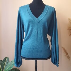 FCUK Classic V-Neck Long Sleeve Soft Knit Sweater in Dark Turquoise