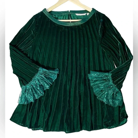 Beautiful Soft Surroundings emerald green pleated velvet top. Absolutely lovely - thank you.