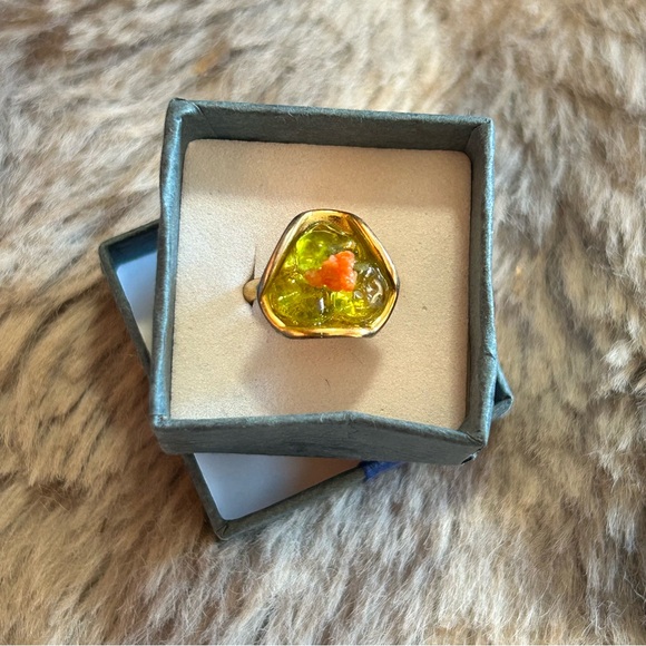 Lovely cross pendant and necklace. The different colors of green look stunning next to the white and gold cross. The green earrings are beautiful. Thank you.