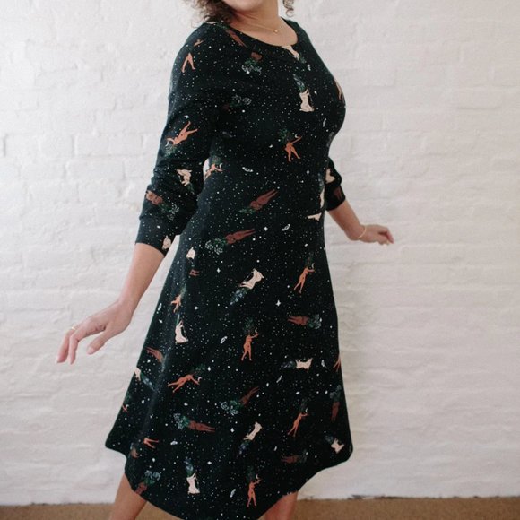This dress is EVERYTHING!! It’s comfortable and in gorgeous condition. The seller sent the most adorable package, sweet note and witchy stickers!! I wore it to a local witchy market this weekend and literally got stopped so folks could photograph the fabric.