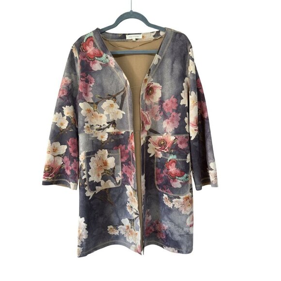 The faux suede floral print duster is as described and a fun addition to my wardrobe! Well packaged. Thanks!
