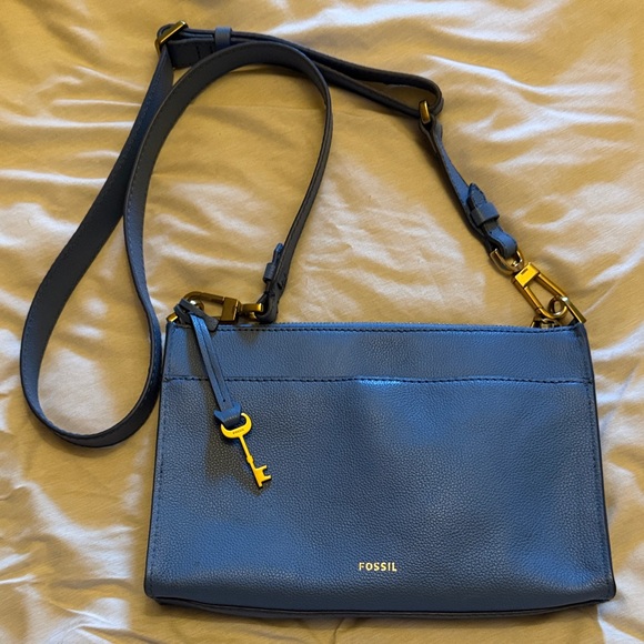 Wonderful purchase of a medium blue, pebbled leather Fossil Crossbody purse that came wrapped well. I am very pleased with the quality of the item and would order from you again .Thank you !