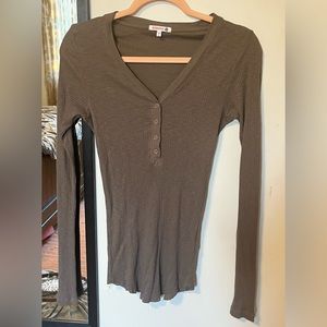 Sundry Fitted V-Neck Ribbed Henley, Size 3/Large