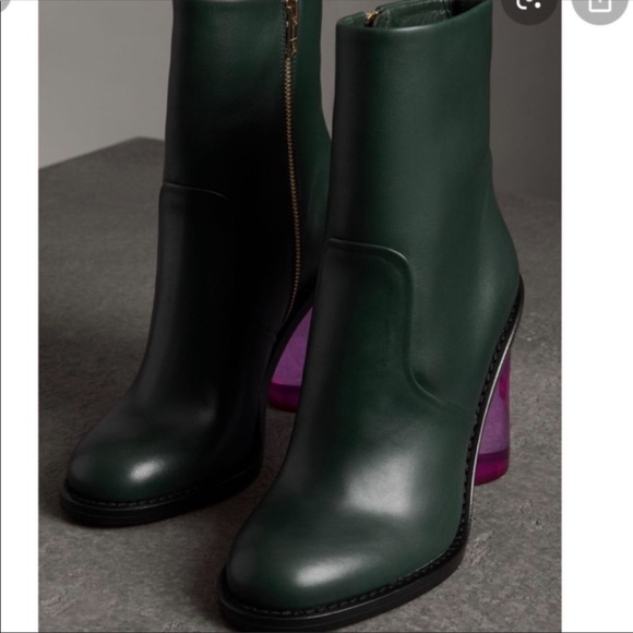 These are so unique. What a great green color and that acrylic heel! I just got back and found these had arrived. The leather is so soft. Fit true to size. Thanks