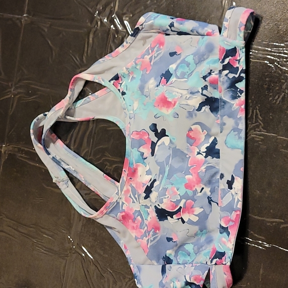 This sports bra Is beautiful I love the lighter colours and floral pattern. Perfect for lighter coloured tops. I am very satisfied with my purchase. Thank you ;)