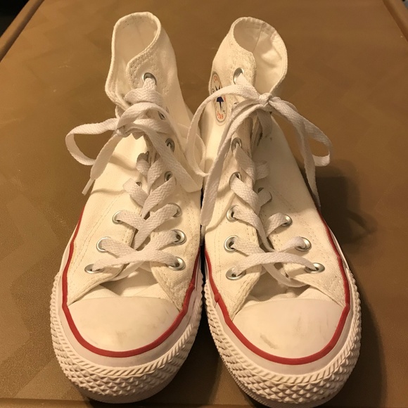 I received the shoes quickly and found NO new marks that were not shown in the pictures, except the actual converse symbol was a little smeared so that would have been a nice thing to know ahead of time. But other than that I love them lots and will wear them all the time.