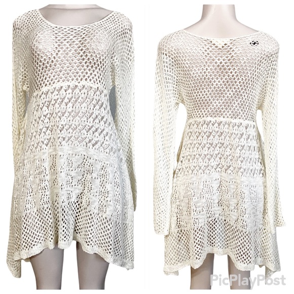 Hem & Thread Sweaters - Hem & Thread Knit/Crochet Open Weave Uneven Hem Sweater/Dress SZ L Ivory