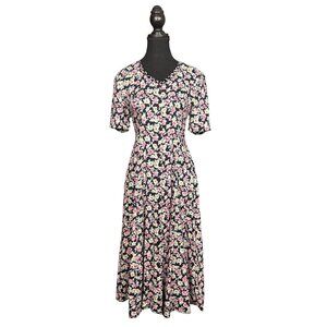 Vintage 90s Floral Rayon Button Front Dress, Long Sleeve Fit and Flare Boho