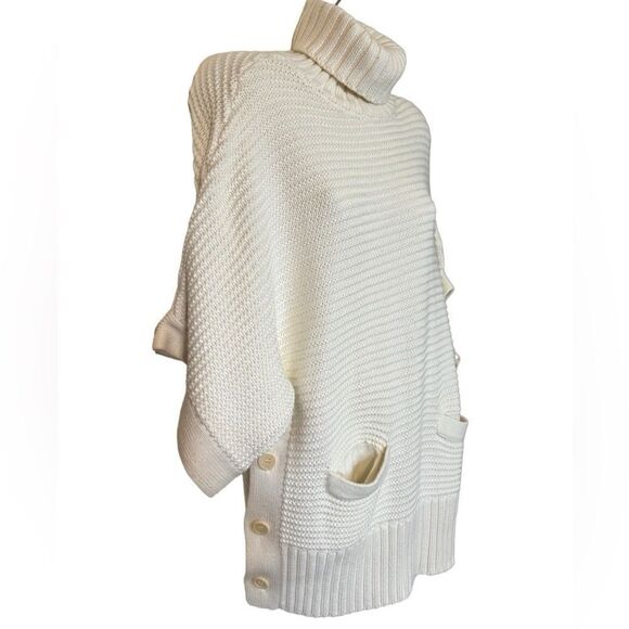 This sweater is in excellent clean new condition. Looks warm and very well made. Delivery was fast. This is the closet to shop everyone.