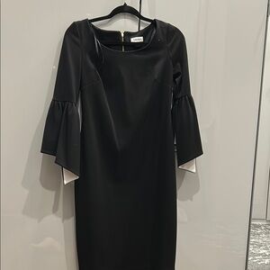 Black Sheath Dress with Bateau Neckline and Bishop Sleeves
