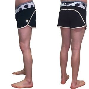 Lululemon SpeedUp Mid-Rise Lined Short 4" black; white and grey pattern waist