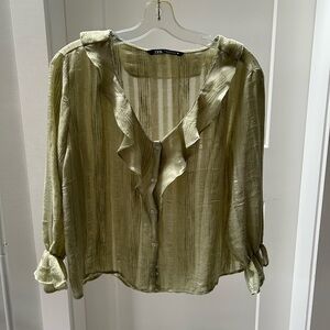 💐ZARA green wavy blouse