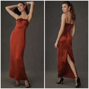 NWT Reformation Frankie Silk Dress Maxi Rosette Red Cocktail Formal Sz 10