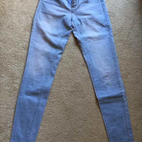Pants looked darker in the photos like a medium blue. When I got them they are a very light blue. Its all good tho, they fit, look good on and were a good price so I cant complain