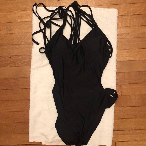 This bikini set was new with tags and the hygienic liner. It's exactly what I thought it was and I'm thrilled to have found it on PoshMark. The only downside is that two of the loops in the bottoms were not sewn in well and will need to be repaired before I can wear the suit. This is clearly a manufacturing flaw -- I can't fault the seller for this. Quick delivery :)