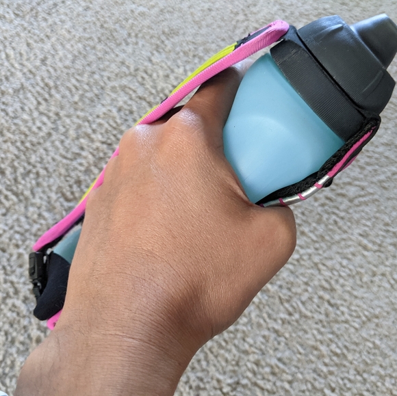 I really like this handheld water bottle with the storage pocket. I use one on my runs, but now my daughter can have one too! Thanks so much! It's perfectly functioning with everything in perfect condition. It arrived on time! :)