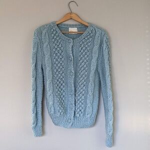 Vintage hand knit cable cardigan light blue sweater