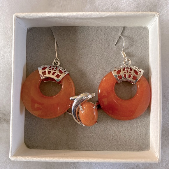 Thank you for fast delivery! The earrings are very nice. The ring is ok. The color is more orange than red but it is a beautiful color. Thank you for your patience with my slowness to respond. Life seems to be moving too fast!