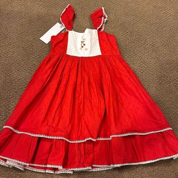Lovely Well Dressed Wolf dress for a young girl! Cute cherries embroidery on the dress yolk too! Thank you!