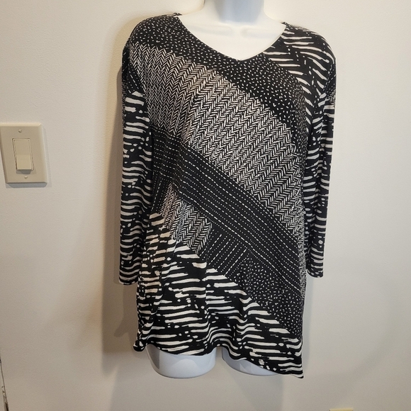 Hi Lyndsay! The b&w mixed print Chico's top is adorable, and surprisingly versatile! Thank you for keeping it in beautiful condition! Cheers, Lu :)