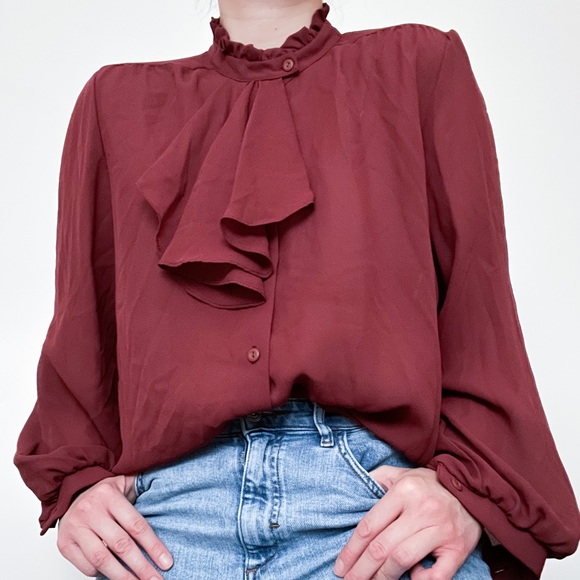 Lovely "Vintage Maroon L/S Ascot Neck Chiffon Blouse." (faded when washed)