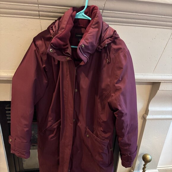 Lands' End maroon long down coat in *top notch* condition. This is a fabulously warm winter coat. (I owned this exact coat years ago and have been searching for another one.) So happy to have found it - thank you!!!