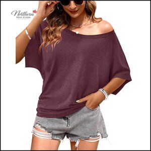 V-Neck Pullover Sweater Women's Long Sleeve Casual Tunic Top Knit