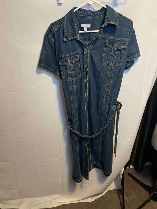 Charter club, short sleeve denim button up dress – beautiful condition, very stylish and fits. Perfect. Will be able to wear it with different seasons. Seller provided outstanding service with quick shipping. Highly recommend