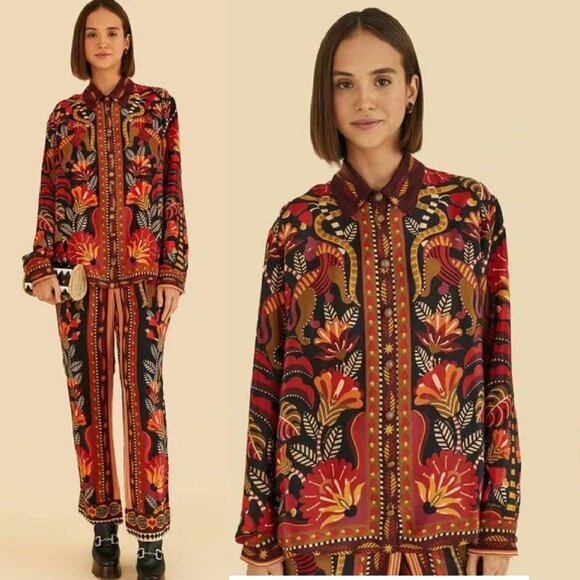 Beautifully ornate ‘Nature Beauty’ scarf shirt by FARM Rio🌴🌺🦜 Shipping was prompt, and the item was received as described😃 Thank you🌷