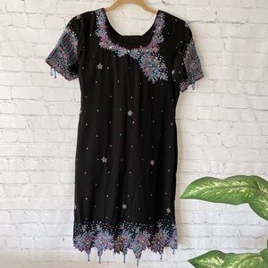 🌹2/$30 Pakistani/Indian Dupatta - Net Applique Full Length Stole - Black/Brown