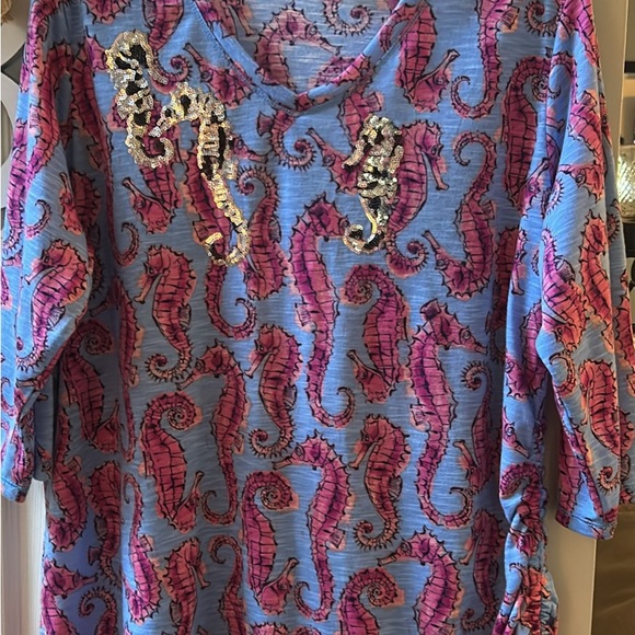 Luv the whimsical seahorse design--lovely blouse!