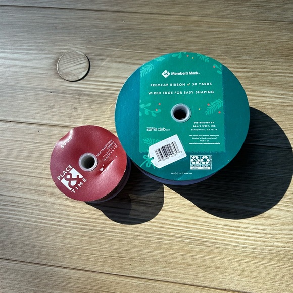 Two 50 yard and 10 yard rolls of blue paid and maroon striped wired ribbon are EXACTLY as described and delivered on time. Thanks Super Posh!