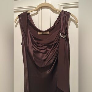 Long John Galliano silk sheath dress draped neck with rhinestone broach detail