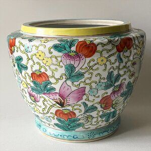 Large Vintage Hand Painted Porcelain Planter Butterfly Floral Pot w/ Drainage