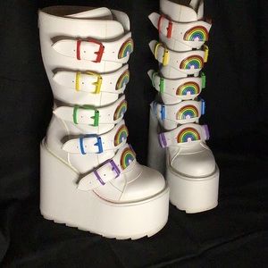 Yru white rainbow platform boots