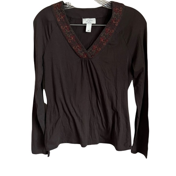 I really like this top. I am trying to get more brown in my wardrobe without the high price tag. This fits the bill. I love the different colored embroidery . So pretty. Thank you!!