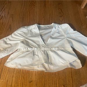 Cropped white long sleeve blouse.