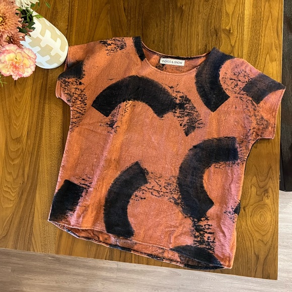Lovely, artsy top! 🧡 Just as described and I am looking forward to wearing it. Thank you!