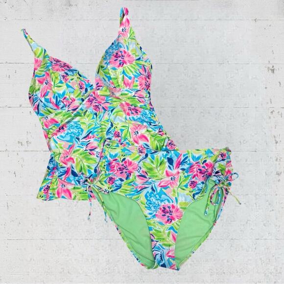 The Stella Parker Tankini 2 Pc Bikini Swimsuit in Waterlily print is brand new with tags. The seller was great and wrapped and packaged it so nicely and shipped it fast. i would buy from this seller again.