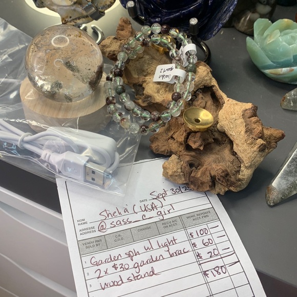 Thank you for all my beautiful items. I love them. Check the light stands u have in stock. The one I received the cord was in two pieces. I think maybe they are wrapped to tight or older stock. My husband is going to see if he can find a way to fix it. He likes his garden quartz bracelet too. Yay! I will see you again. Have a great weekend