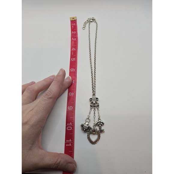Pretty necklace, just as described, sets a mood with the three charms. It came wrapped well, and quickly.