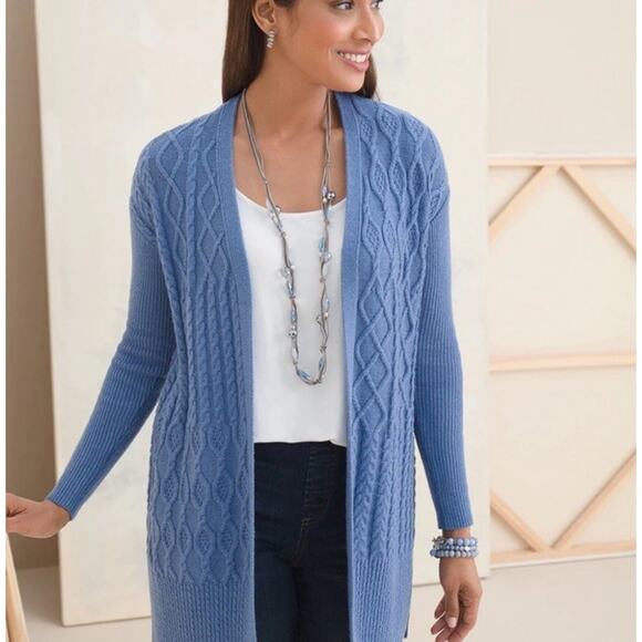 Hi Katie! The Chico's denim blue cardi is so perfect...it's exactly the color I was hoping for as I have several things to pair with it. Thank you for keeping it in great condition, and shipping so quickly! Cheers, Lu :)