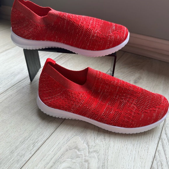 Have been looking for a pair of red blingy slip on sneakers for a long time. These fit the bill! They are just the color and style that I wanted. Flashy shoes, comphy and a great price, fast shipping too. What's not to like? Thank you