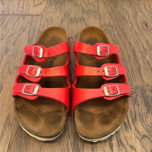 Ten stars 🌟 if I could!! These are in perfectly wonderful like brand new condition and fit exactly! Moved one buckle for my odd foot and Voilà absolutely fabulous fit and look! I have worn out so many Birkenstocks and Birki’s that I just needed fresh ones! Love the hot pink and Aquamarine for a tough Aries woman was a no brained. My golden retriever was excited that I put them on and took her right outside! The Amazon Pembrook socks in bamboo/cotton are actually very thin but that works well with these ! Just watched the Barbie movie last night and it was very cute 🥰 is you played with Barbies like I did. I even designed, sketched and sewed Barbie clothes too! It really hit home plus had a brother named Ken!! Haha! Have a great day!